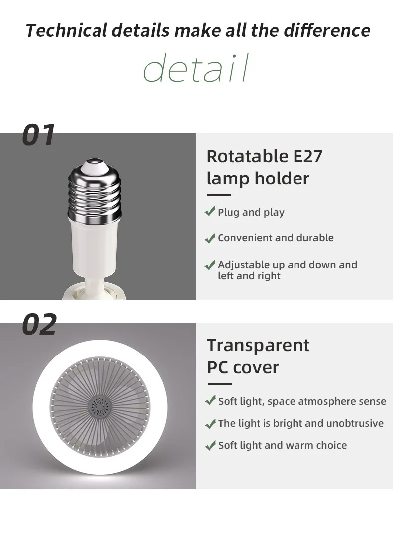 - EASY DIY INSTALLATION: Skip the hassle and cost of hiring an electrician and enjoy easy DIY installation of our fan light. Simply install it like an E27 bulb and you're ready to go.