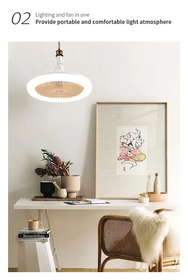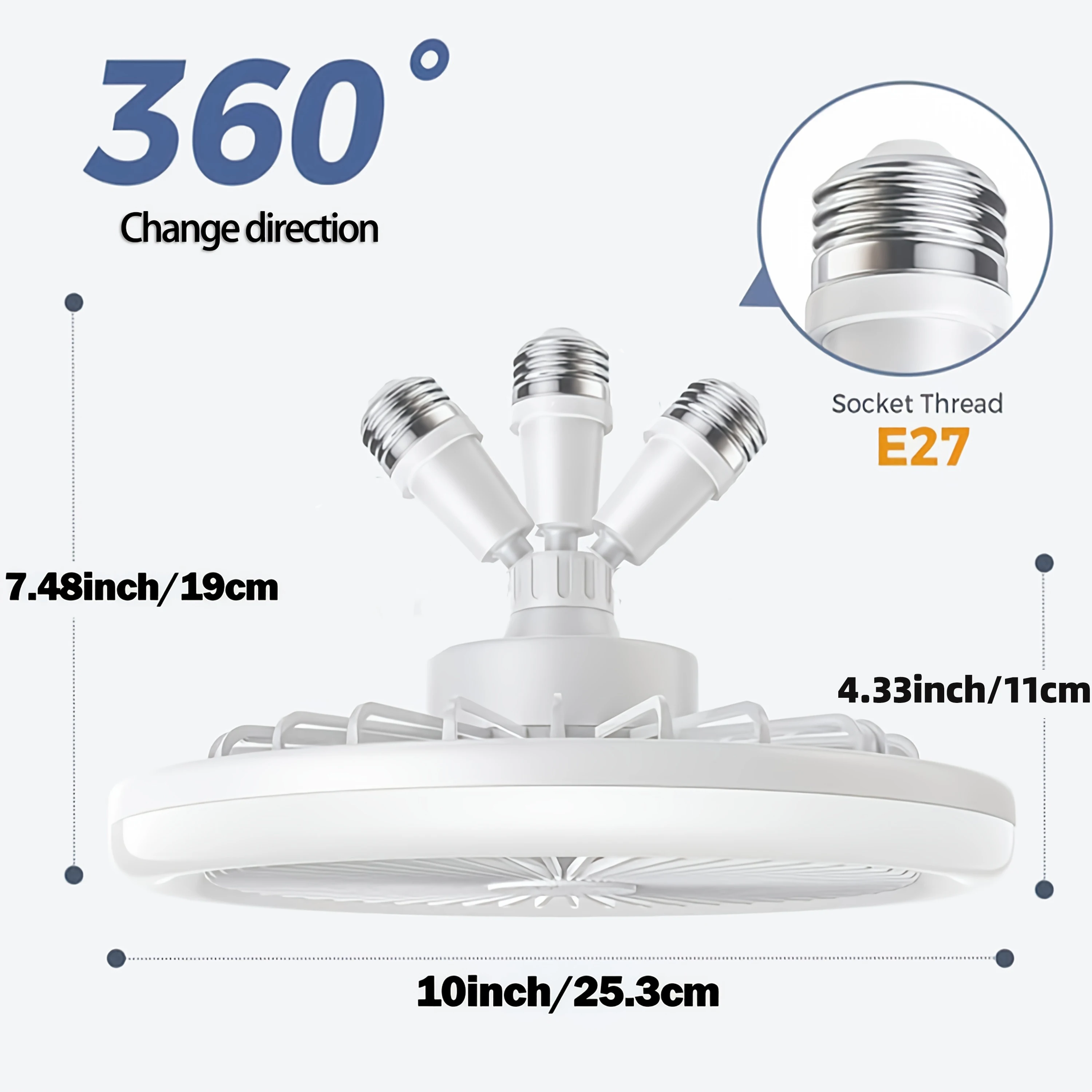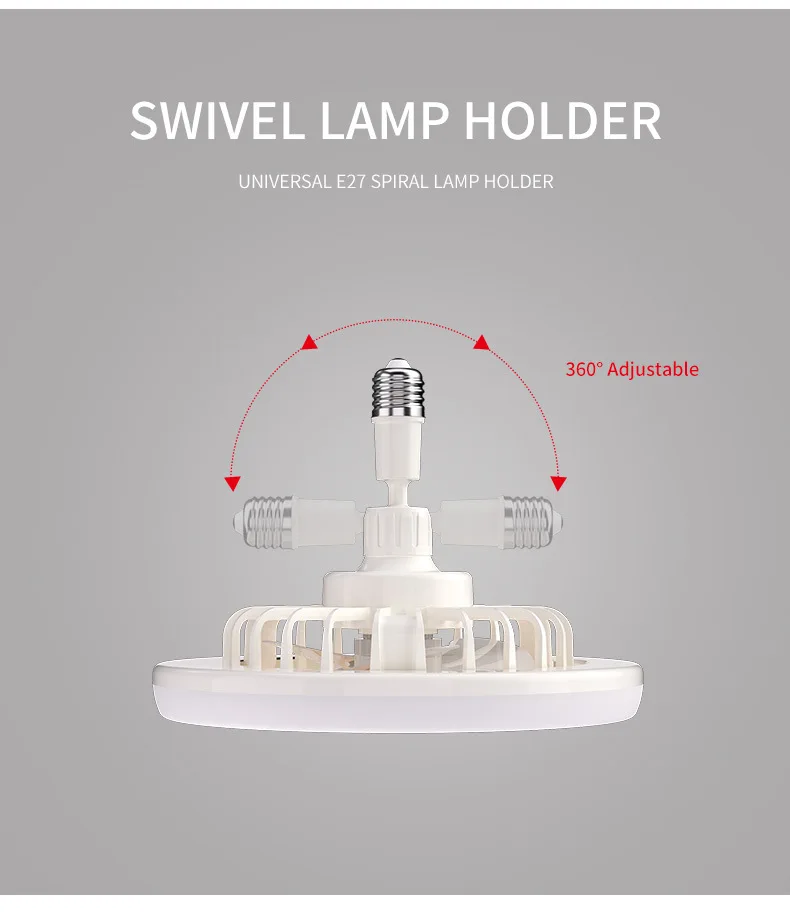 - Upgrade your space with our fan light: Our fan light offers the convenience of lighting and fan functionality in a compact design. Enjoy optimal comfort in small rooms during the summer months with the fan bulb option. Weak, medium, and strong wind speeds and a 360-degree adjustable head provide personalized comfort.