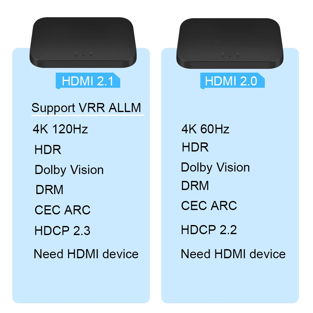 HDMI 2.1 Sync Box: Supports 4K 120Hz, with HDR Dolby Vision. DRM content can be watch & played, with HDCP 2.3 compliance. A HDMI device is required for the LED syncing. ARC is supported, however, eARC is currently not. The VRR function is usually reflected on the PS5,and when used with the HDMI 2.1 box.